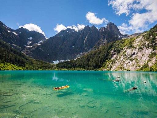 Embark on a summer journey to the heart of Banff, where each dawn ushers in a spectacle of colors as the first light bathes Lake Louise. Here, the tranquil beauty of Moraine Lake’s sapphire waters reflects the grandeur of snow-capped peaks, creating a canvas of awe and wonder.
