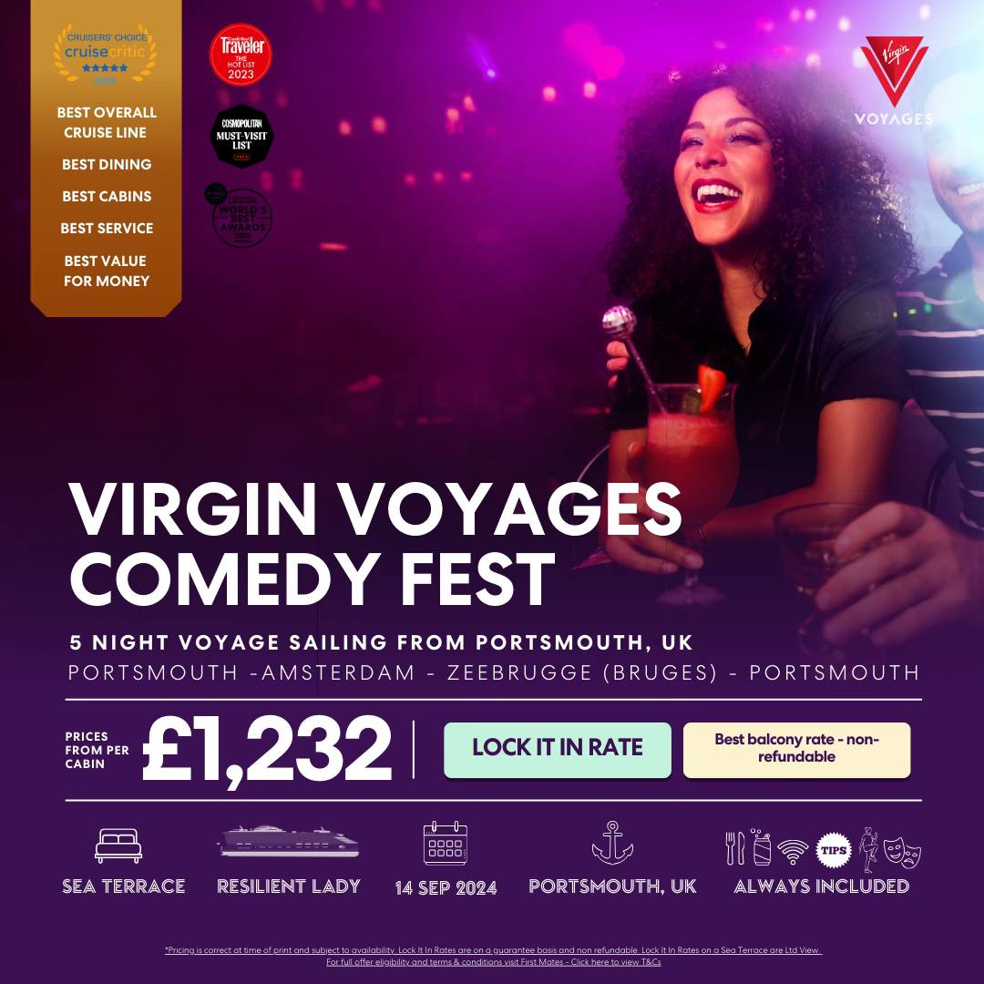 If you love comedy and crave a unique vacation, the Virgin Voyages Comedy Fest is calling your name. Secure your spot today and get ready for a festival that’s bursting with laughs, luxury, and loads of fun.